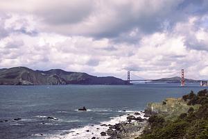 High resolution, custom color graded image of a view of the Golden Gate Bridge from the Presidio in San Francisco, California. Taken with a NikonD850.