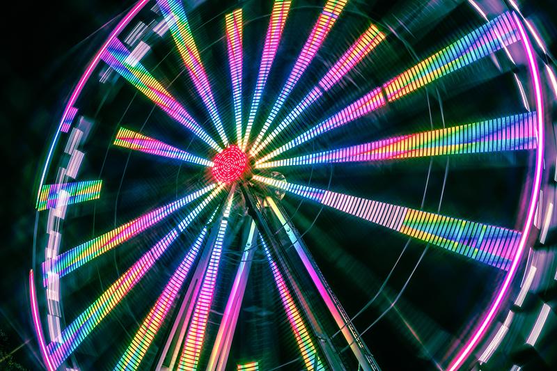 High resolution image of a long exposure of a ferris wheel in Golden Gate, California. Taken with a NikonD850.